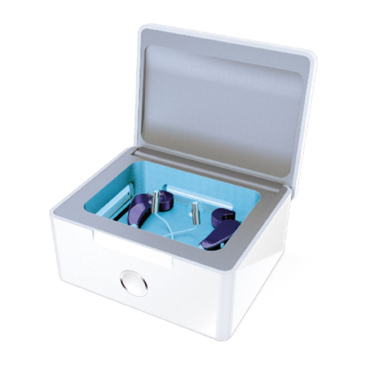◼︎補聴器を入れて、スイッチを押して、30分待つだけの簡単操作。急速ファンでしっかり乾燥します。